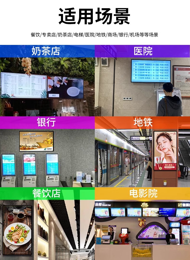 奶茶店、电梯广告机显示屏吊挂宣传屏广告机